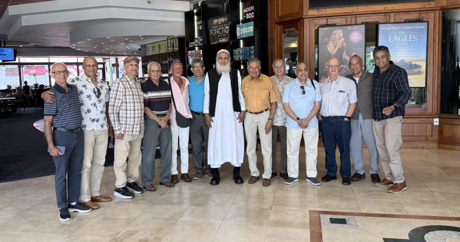 Antonian Rugby Captains, L-R: Peter Corteling (1970), John Henry (1969), Abdul Kuthus (1968), Basil Hyde (1967), Paddy Guneratne (1966) and Michael Macky (1965) - pictured in Melbourne on 22/01/2026